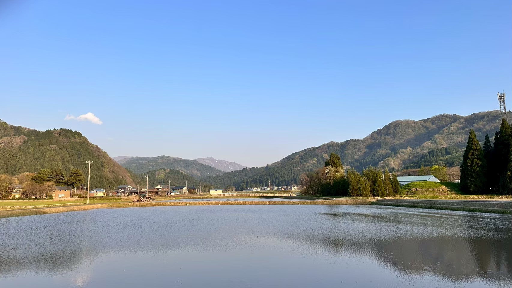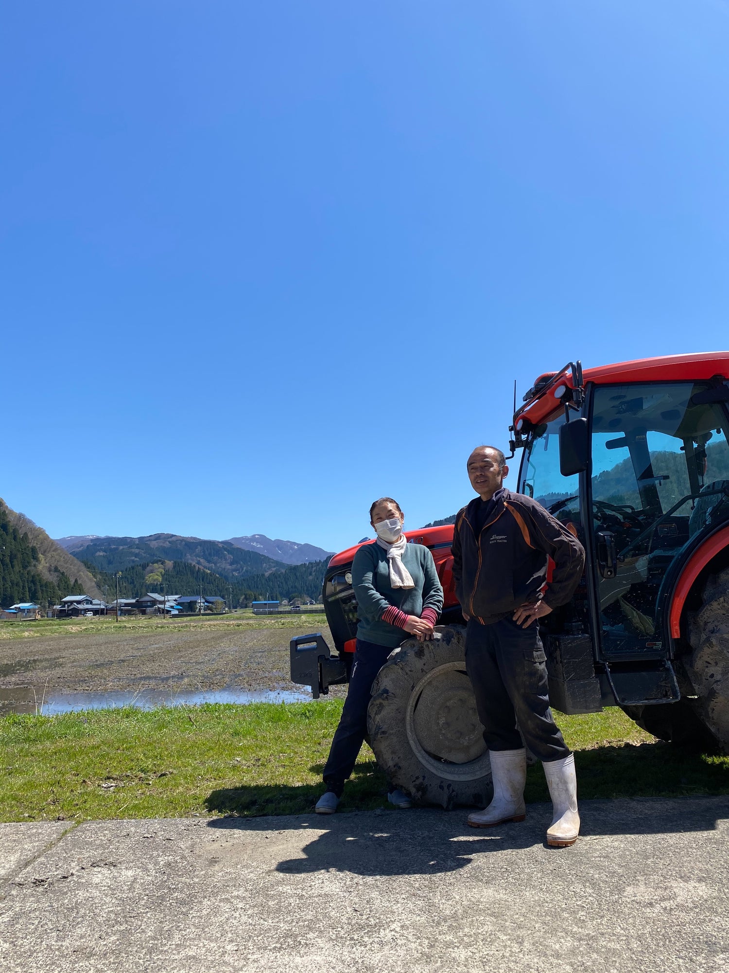 雪深いこの地で、春になると雪解け水が山を下り、田んぼをやさしく潤します。この清らかな水と澄んだ空気が、お米の甘みと美しさを育てています。